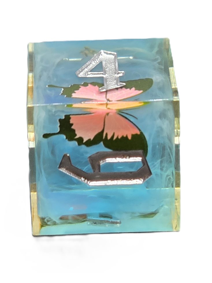 Resin made Butterfly Glade 7 piece dice set for Dungeons & Dragons and other TTRPG and board games.