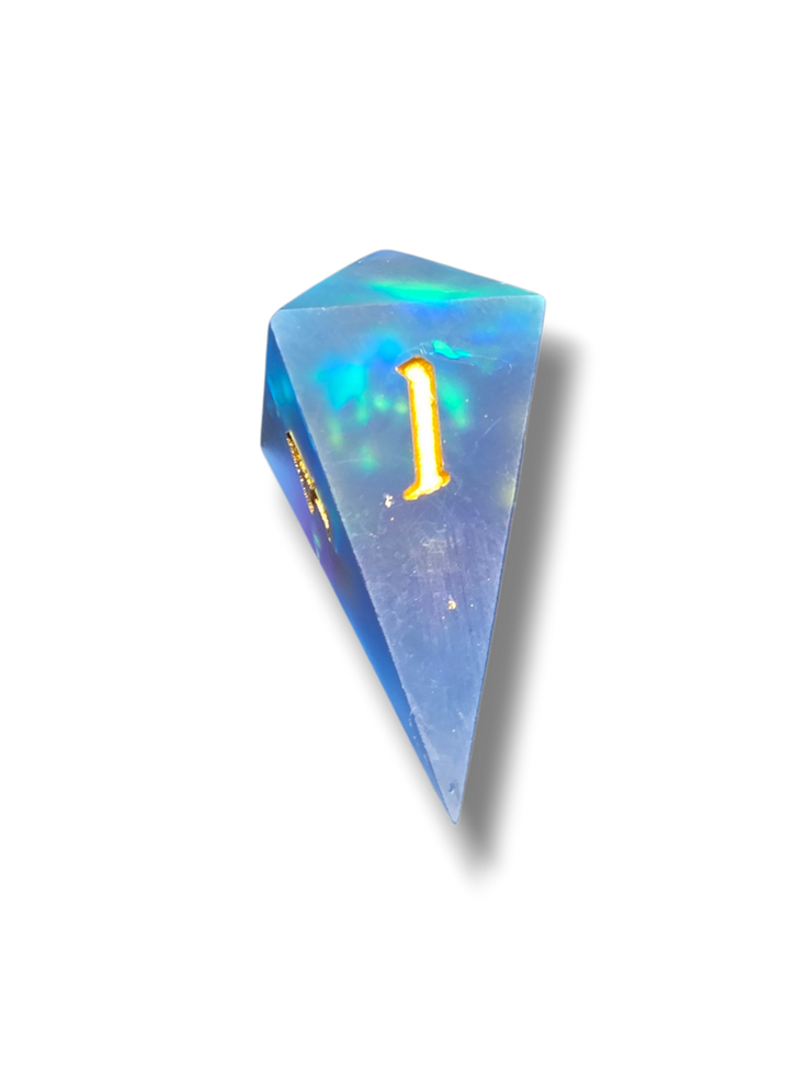 Resin made frosted water dice set for Dungeons & Dragons and other TTRPG and board games.