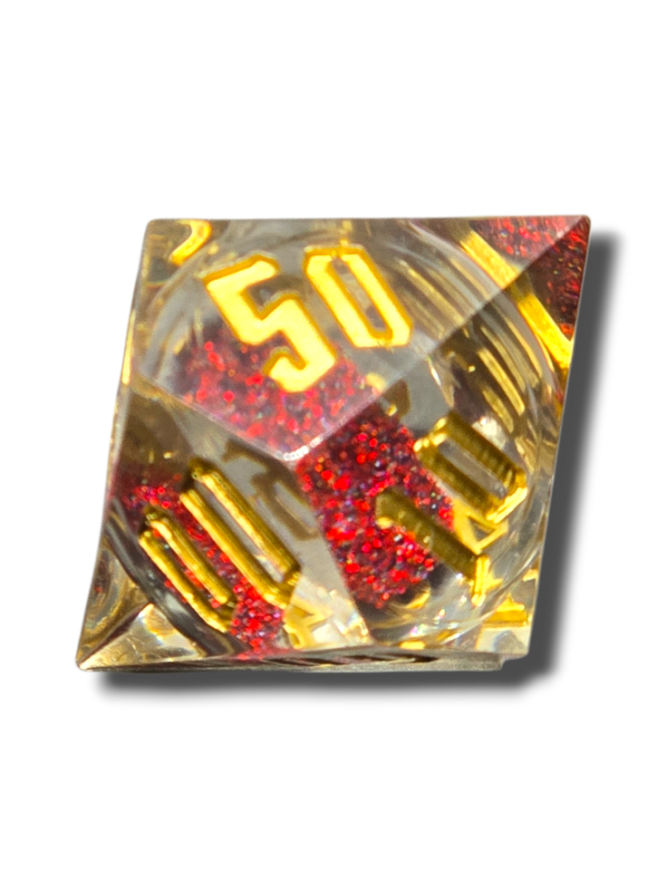 Resin made Red Sea's Fury Liquid Core 7 piece dice set for Dungeons & Dragons and other TTRPG and board games.